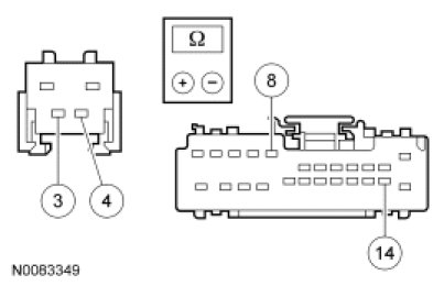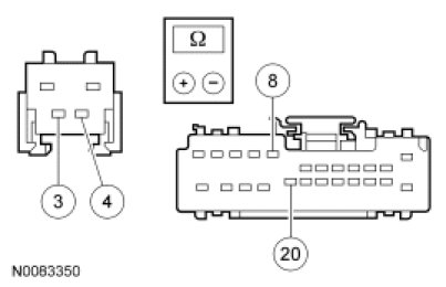 - Measure the voltage between driver seat front height motor C382-4, circuit VPS10 (BU/GN), harness side and ground; and between driver seat front height motor C382-3, circuit RPS13 (GN/OG), harness side and ground.