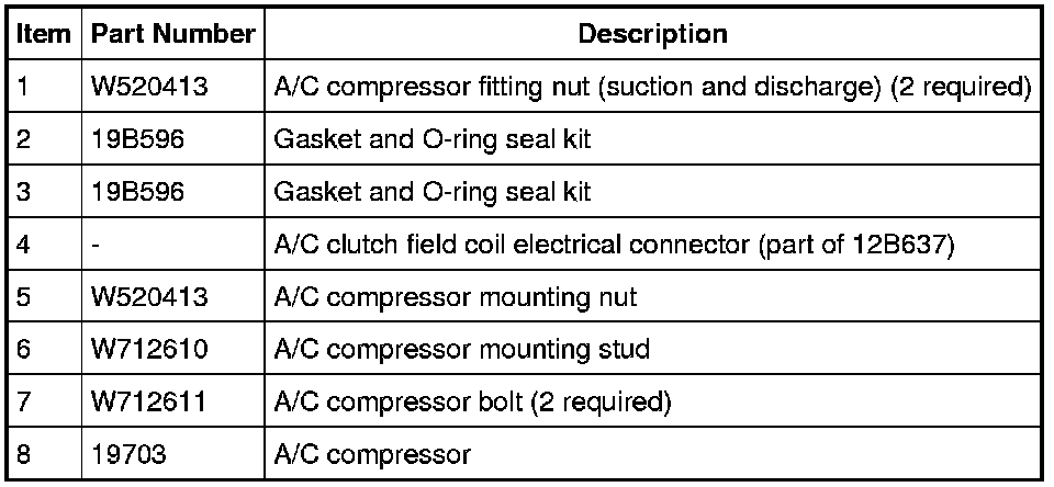 NOTE: A new A/C compressor may come equipped with an A/C clutch disc and hub, A/C compressor pulley and A/C clutch field coil already installed. If these components are not pre-installed, it will be necessary to transfer these parts from the old A/C compressor to the new compressor prior to installations of the A/C compressor if suitable for reuse.