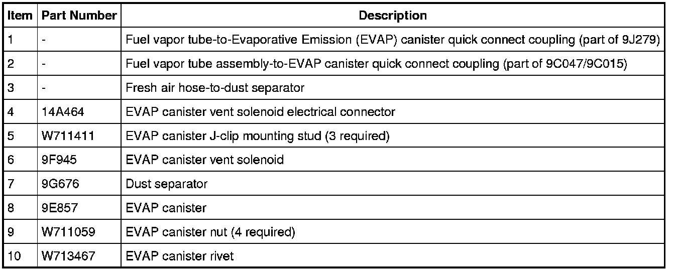 Evaporative Emission (EVAP) System Components - Exploded View