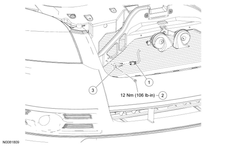 5. WARNING: Always tighten the fasteners of the restraints control module (RCM) and impact sensor (if equipped) to the specified torque. Failure to do so may result in incorrect restraint system operation, which increases the risk of personal injury or death in a crash.