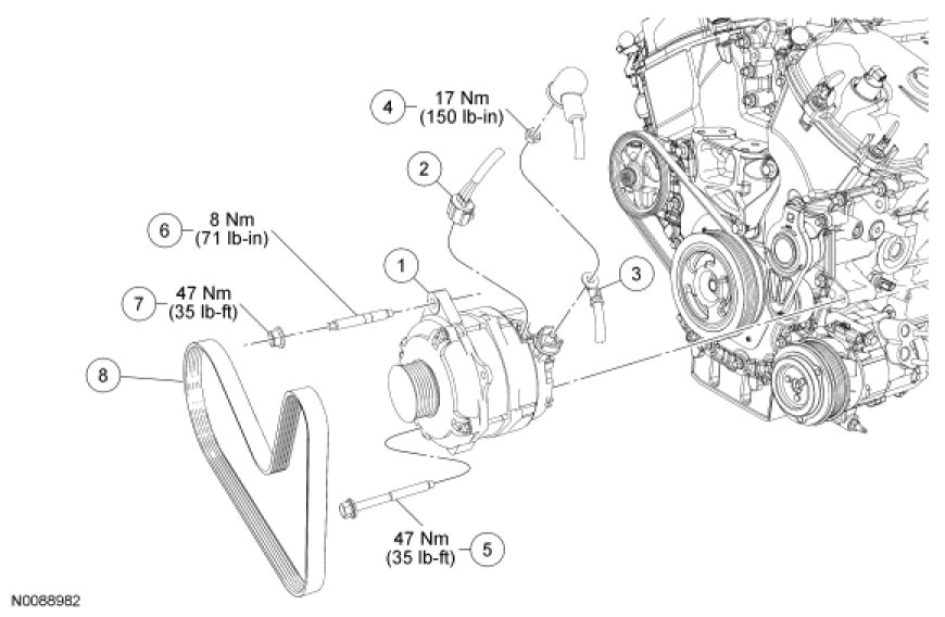 5. Disconnect the generator electrical connector and position the engine wiring harness aside.