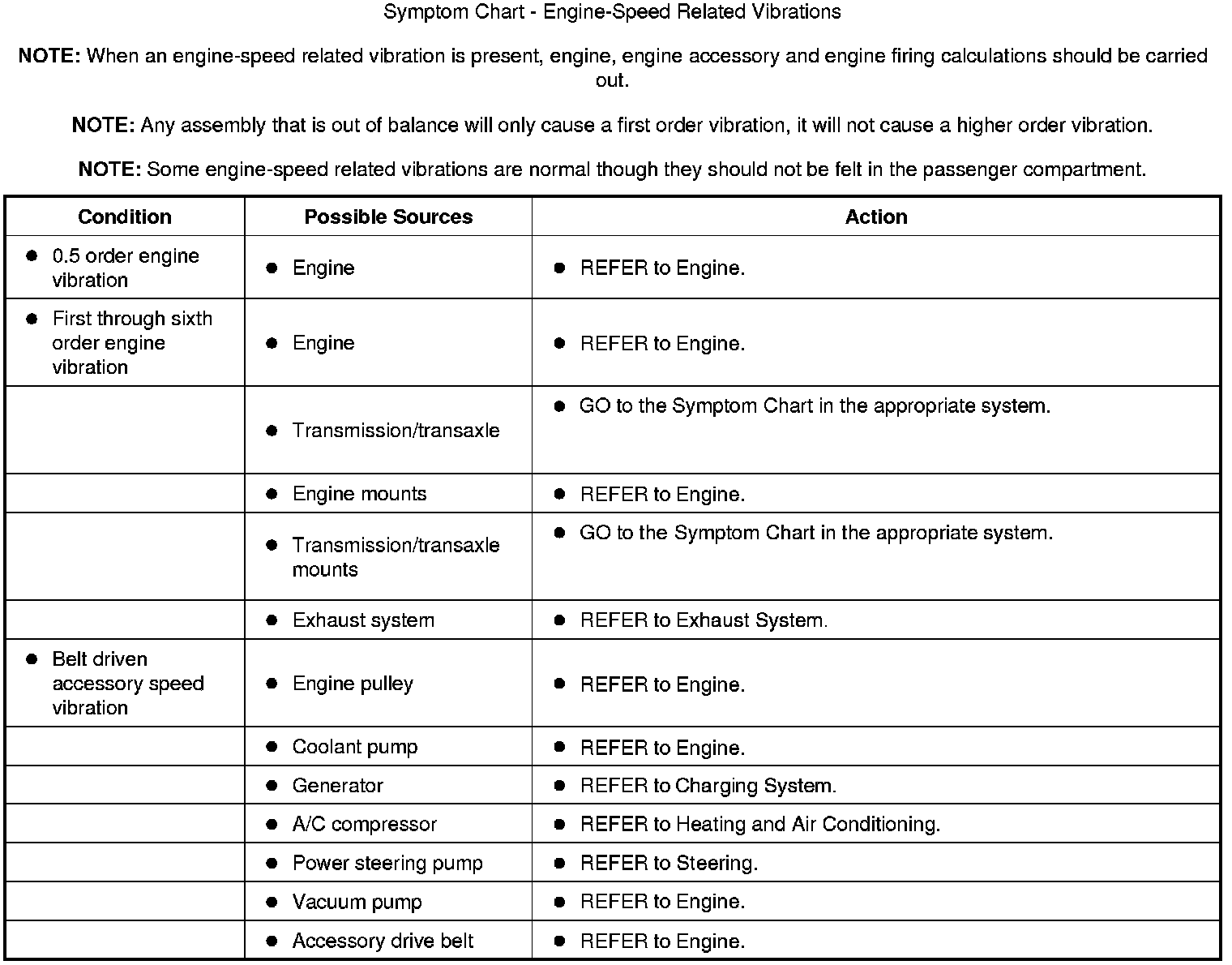 Symptom Chart - Engine-Speed Related Vibrations:
