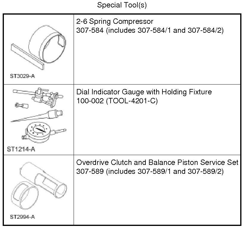 11. Remove the Overdrive Clutch and Balance Piston Service Set 307-589/2 and the 2-6 Spring Compressor 307-584/2 .
