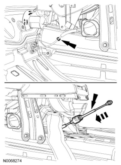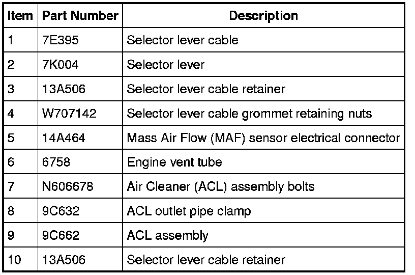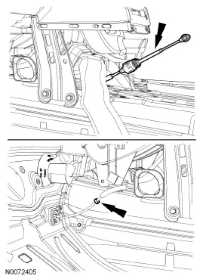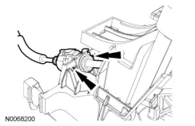 4. Route the selector lever cable under the heater housing and connect the selector lever cable retainer to the floor.