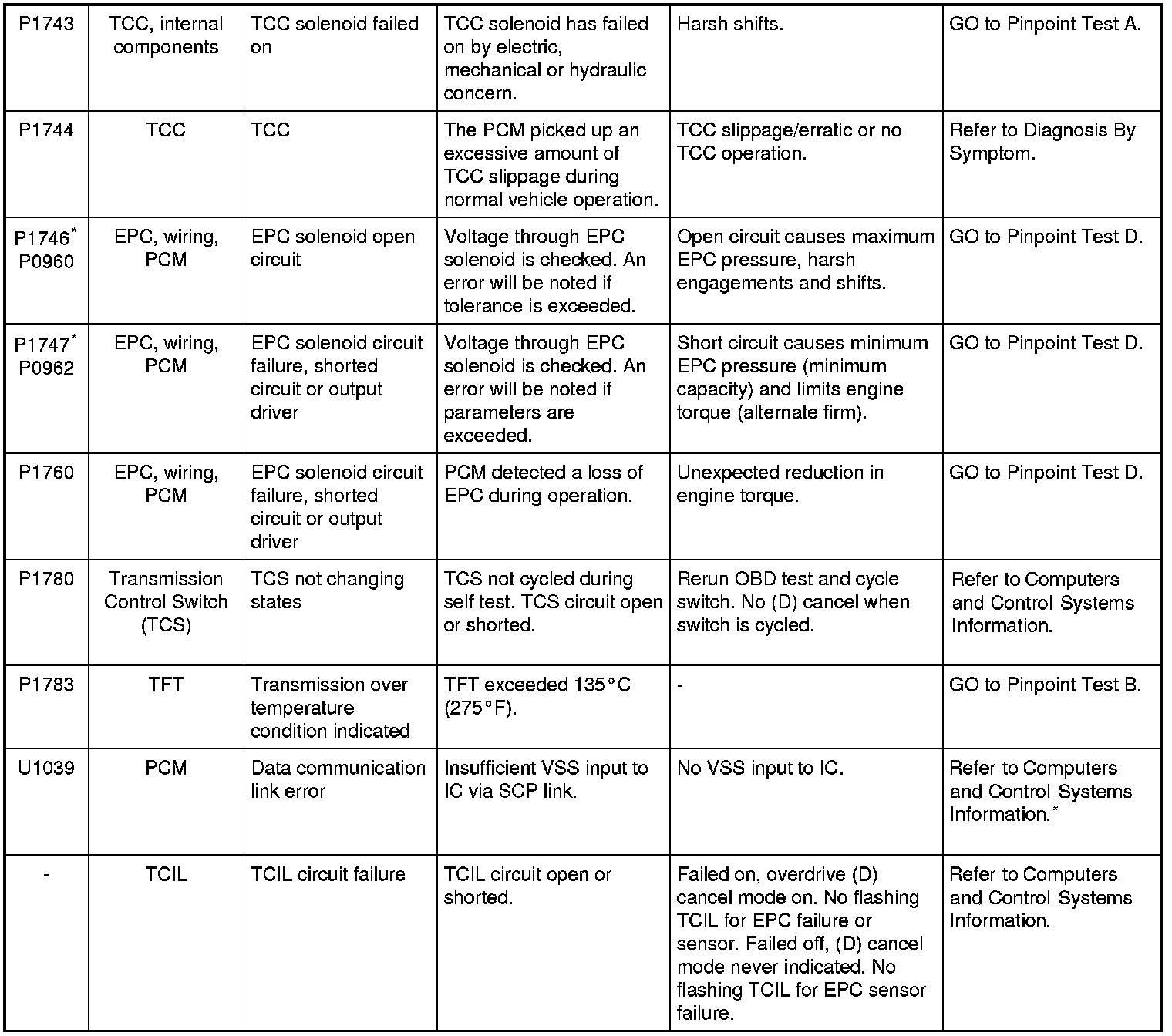 * Output circuit check, generated only by electrical symptoms.