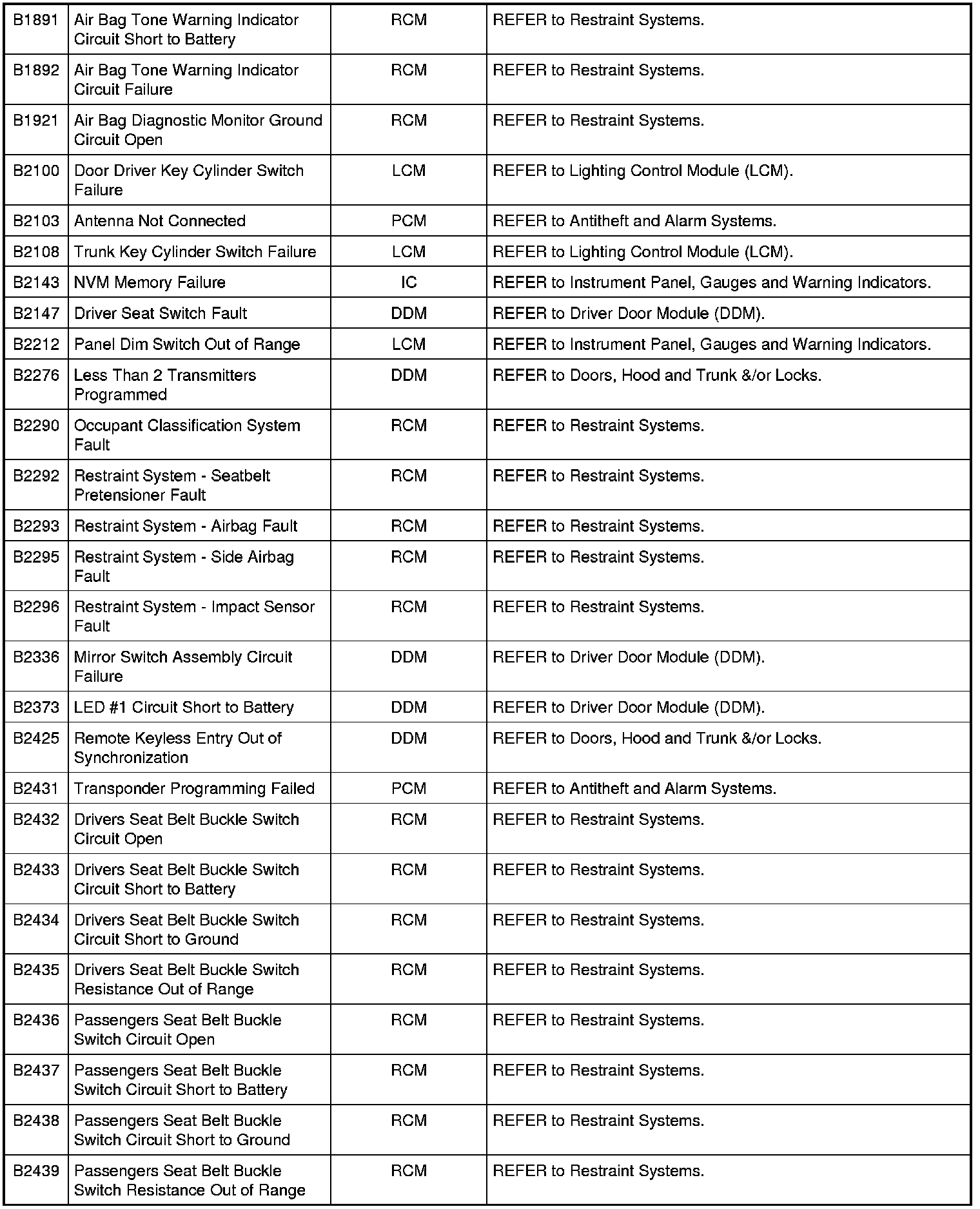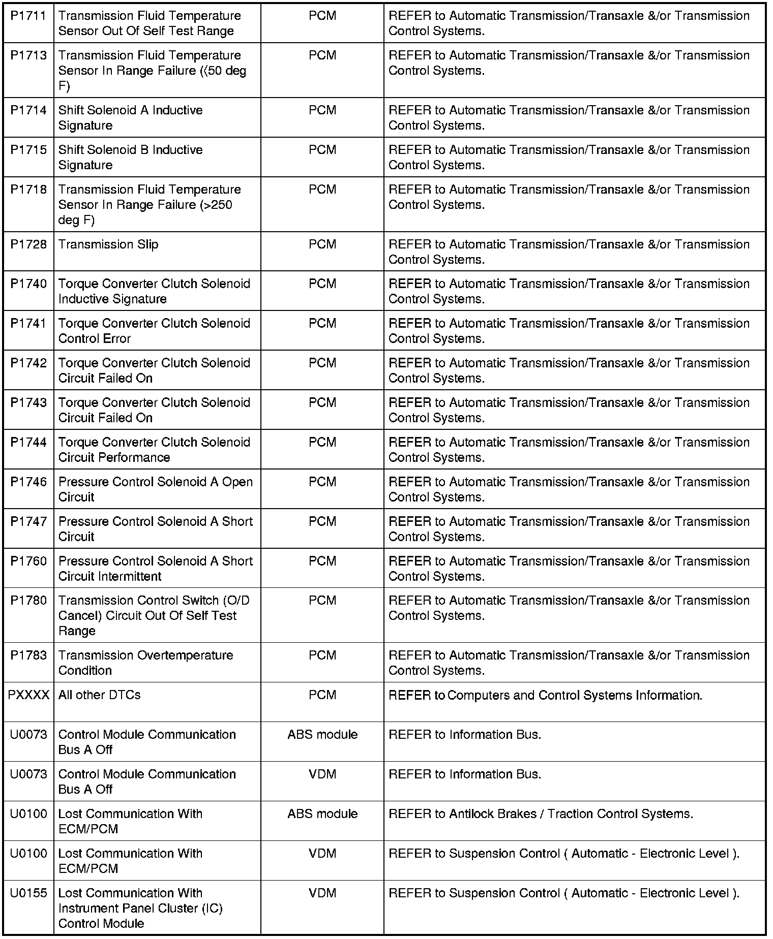 NOTE: Most powertrain (P-code) DTCs are diagnosed in Computers and Control Systems Information. If the P-code retrieved is not listed below, refer to Computers and Control Systems Information to continue diagnostics.