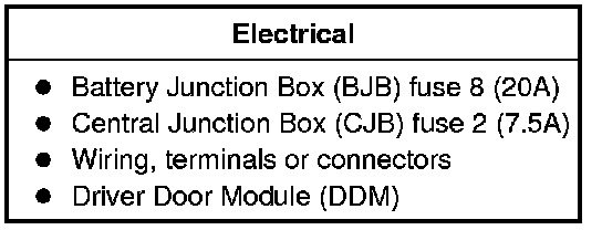 9. If the DTCs retrieved are related to the concern, go to DTC Charts. Driver Door Module (DDM)