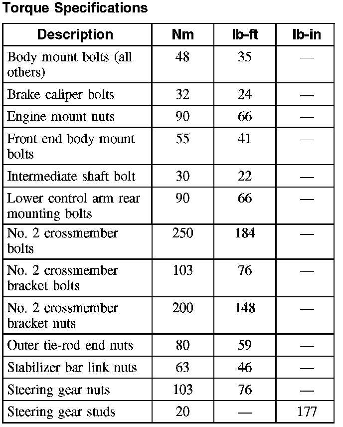Torque Specifications: