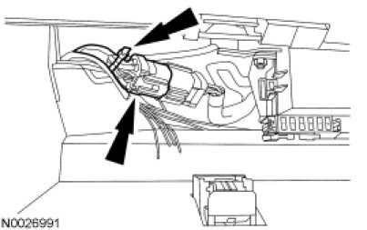 7. Disconnect the RH lower instrument panel courtesy lamp.