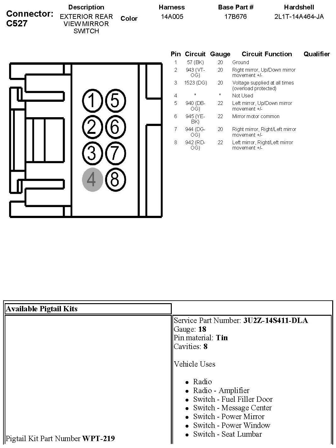 Power Mirror Switch: Diagrams