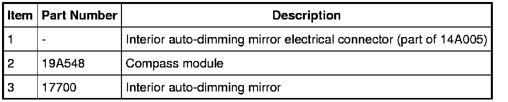 4. If equipped, install the compass module. Check the compass zone and calibration. For additional information, refer to Instrument Panel, Gauges and Warning Indicators.