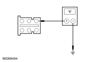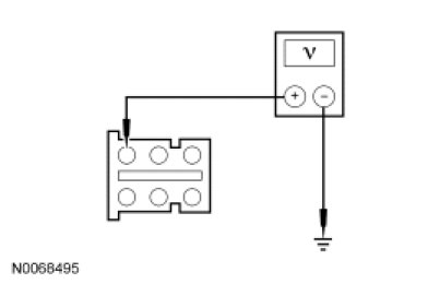 - While operating the exterior mirror control switch in the UP position, measure the voltage between ground and exterior mirror: