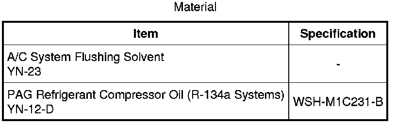 NOTICE: Only the listed A/C Flush and Purge Machine, A/C Flush and Purge Fitting Kit, A/C Flush Adapter Kit and A/C System Flushing Solvent are approved for use on Ford vehicles. No other flushing device or solvent is approved for flushing heat exchangers (Air Conditioning [A/C] condenser, A/C evaporator). Use of any other flusher or solvent may cause damage to the A/C system and the flushing unit.