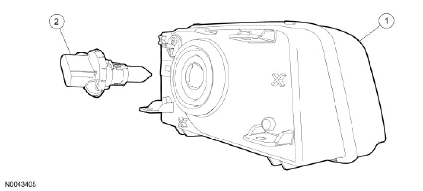 1. Remove the headlamp assembly. For additional information, refer to Headlamp Assembly Service and Repair.