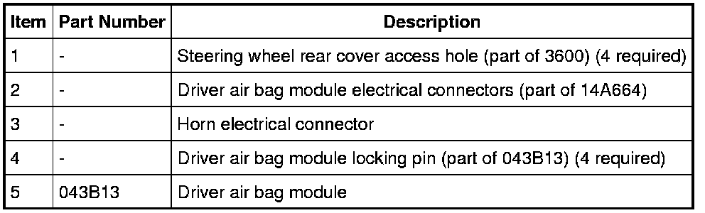 NOTICE: Make sure the steering wheel spring clips retaining the driver air bag module are disengaged from each of the 4 locking pins on the driver air bag module before removing the driver air bag module from the steering wheel. Failure to do so will damage the driver air bag module and steering wheel.