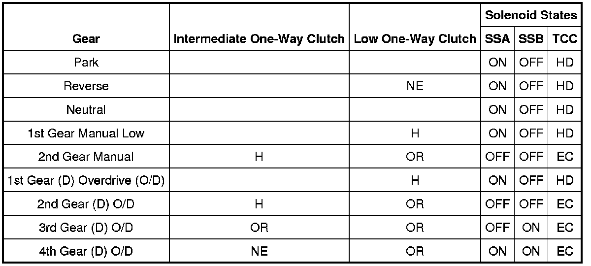 Band and Clutch Application Chart A