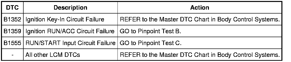 Lighting Control Module (LCM) DTC Chart