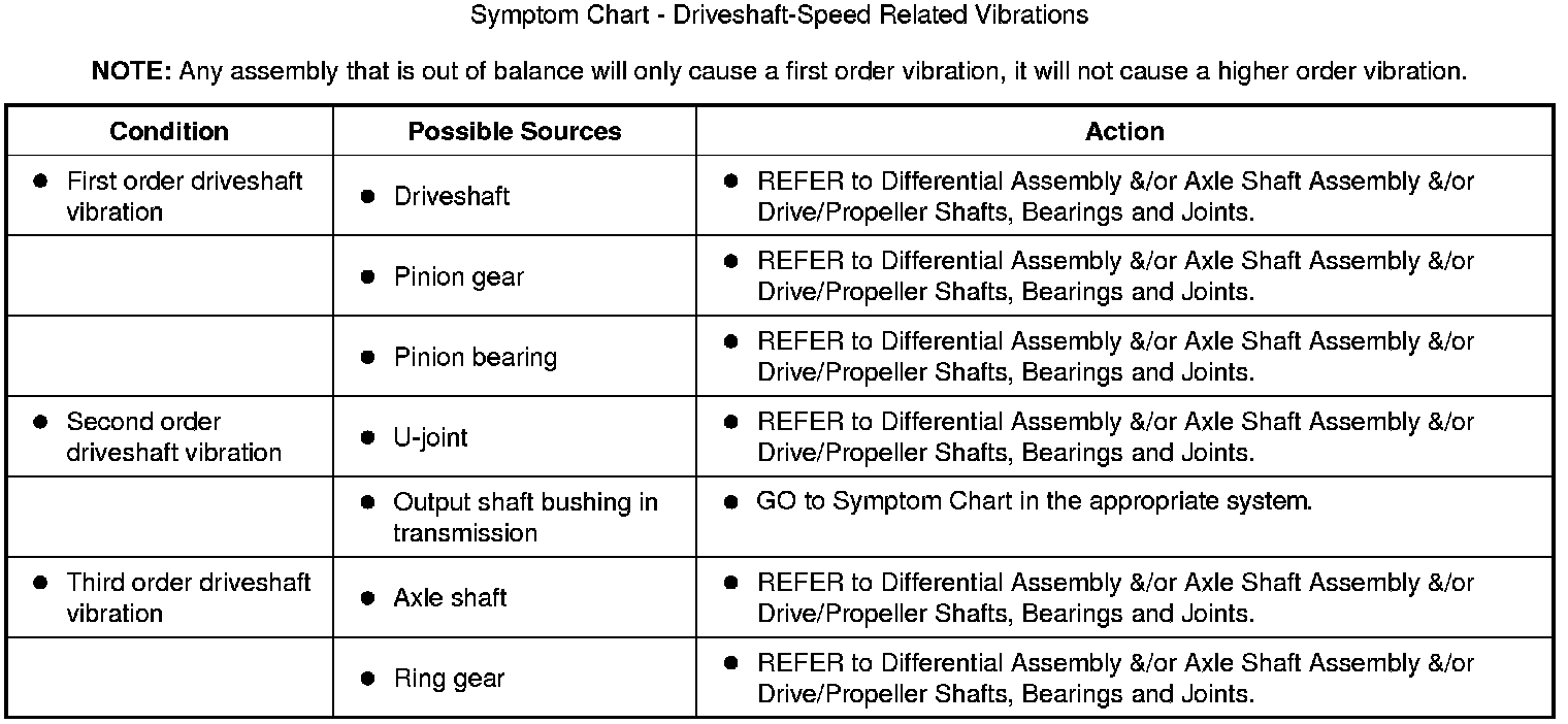 Symptom Chart - Driveshaft-Speed Related Vibrations