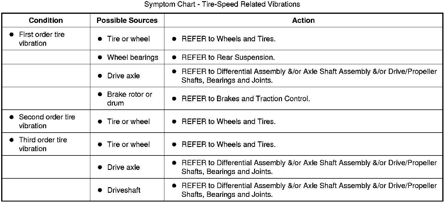 Symptom Chart - Tire-Speed Related Vibrations