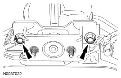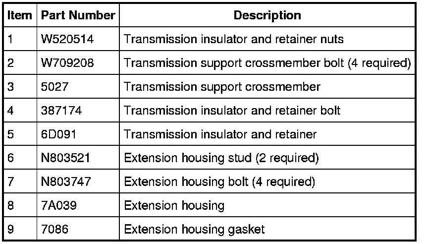5. Install the transmission support crossmember. For additional information, refer to Transmission Support Crossmember Service and Repair.