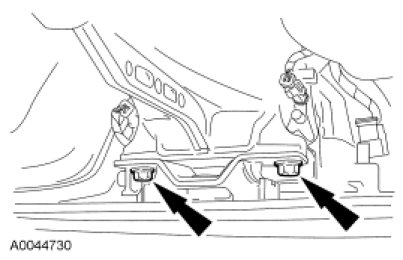 8. Remove the LH and RH catalyst monitor connector retainers.