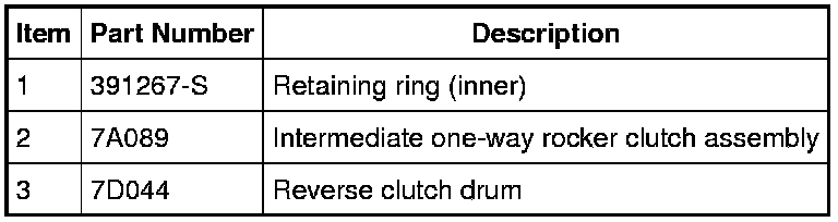 NOTE: If the retaining ring shows signs of distortion or expansion, replace the intermediate one-way rocker clutch and retaining ring.