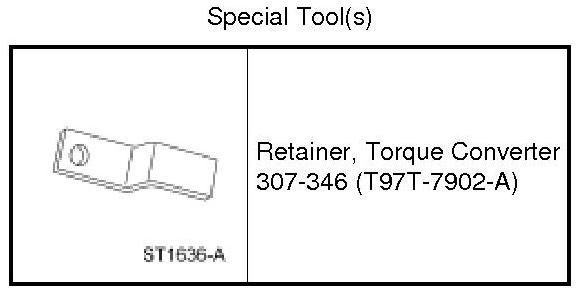 1. WARNING: Secure the torque converter in the transmission during removal or installation. The torque converter is heavy and may result in injury if it falls out of the transmission. Failure to follow this instruction may result in serious personal injury.