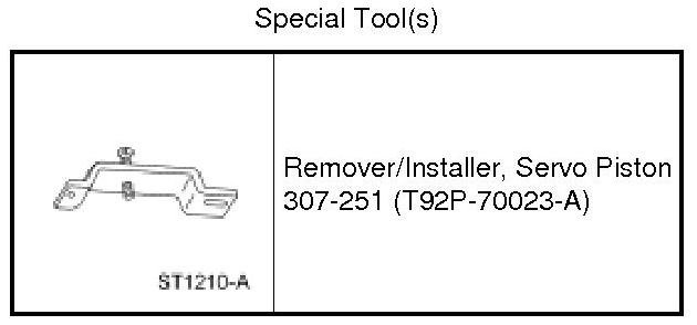 2. NOTE: If the Servo Piston Remover/Installer tool is not available, extreme care must be taken. Spring pressure will force Overdrive (O/D) servo piston assembly out of case. Case bore damage may result from trying to pry on O/D servo internal retaining ring.