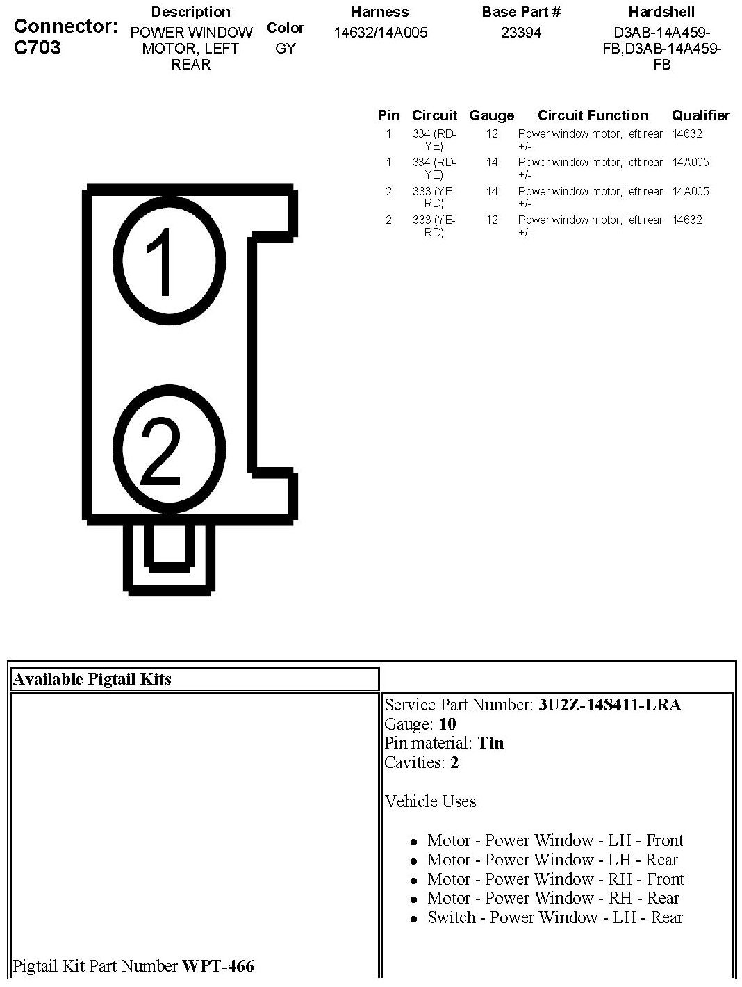 Power Window Motor, Left Rear