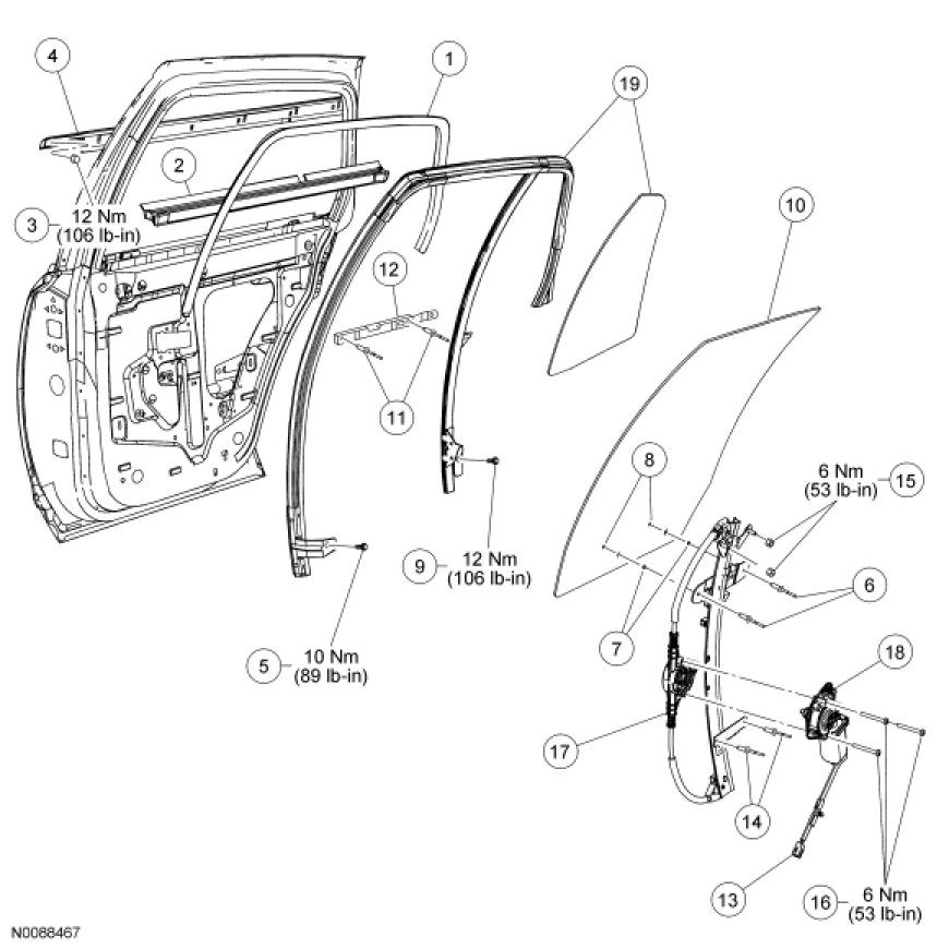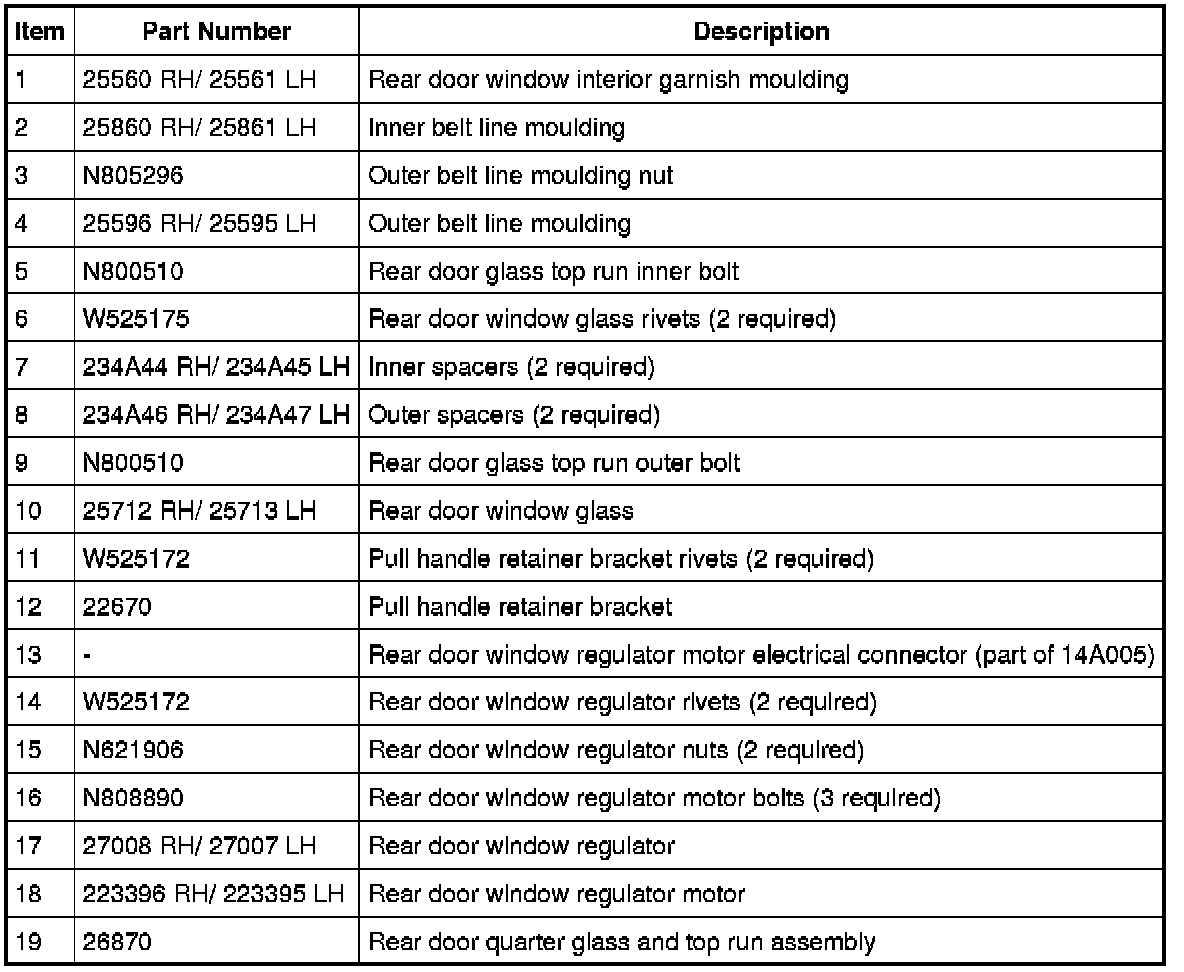 Glass, Frames and Mechanisms - Exploded View, Rear Door