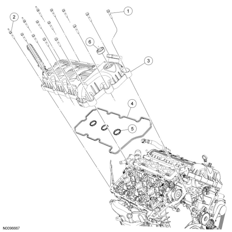 2. NOTE: The valve cover must be installed and the bolts and stud bolts tightened within 4 minutes of sealant application.