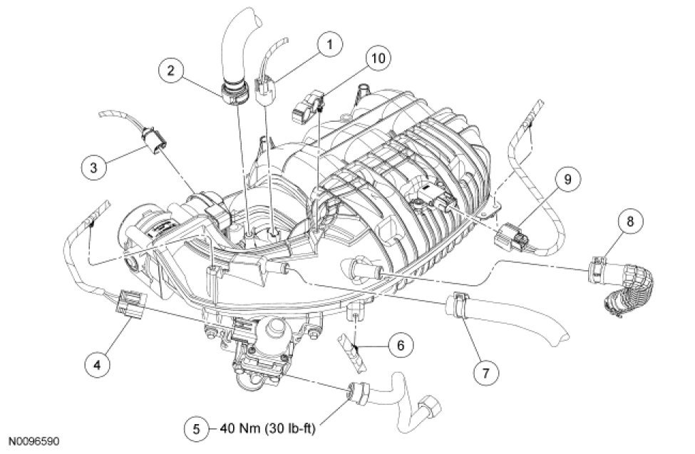 1. NOTICE: If the engine is repaired or replaced because of upper engine failure, typically including valve or piston damage, check the intake manifold for metal debris. If metal debris is found, install a new intake manifold. Failure to follow these instructions can result in engine damage.