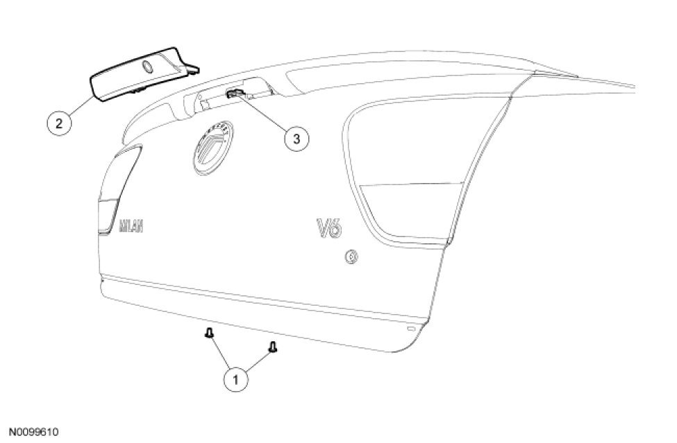 1. Disconnect the high mounted stoplamp electrical connector from within the luggage compartment.