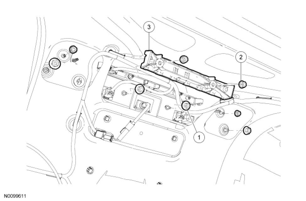 9. Release the 2 tabs and remove the high mounted stoplamp.