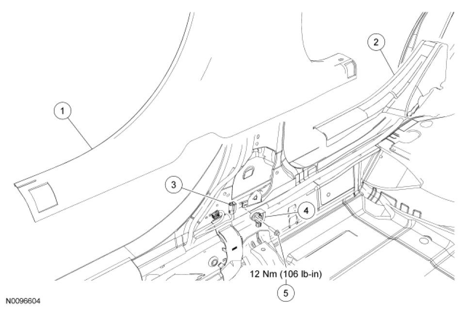 5. WARNING: Always tighten the fasteners of the restraints control module (RCM) and impact sensor (if equipped) to the specified torque. Failure to do so may result in incorrect restraint system operation, which increases the risk of personal injury or death in a crash.