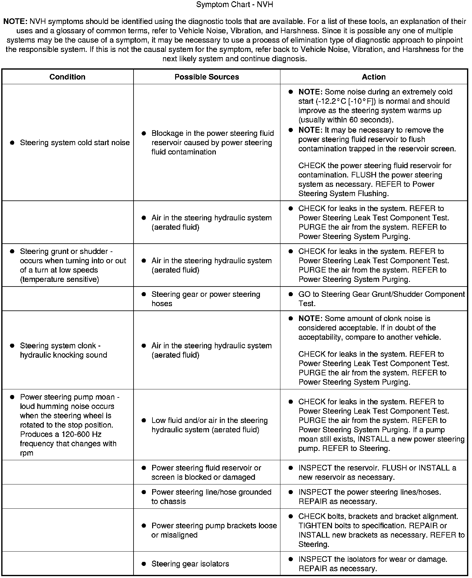 Symptom Chart - NVH