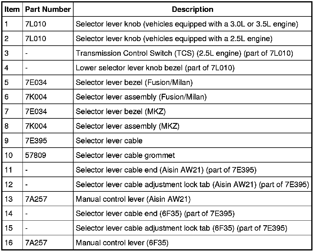 - a selector lever cable that connects the transaxle range selector lever to the selector lever assembly.