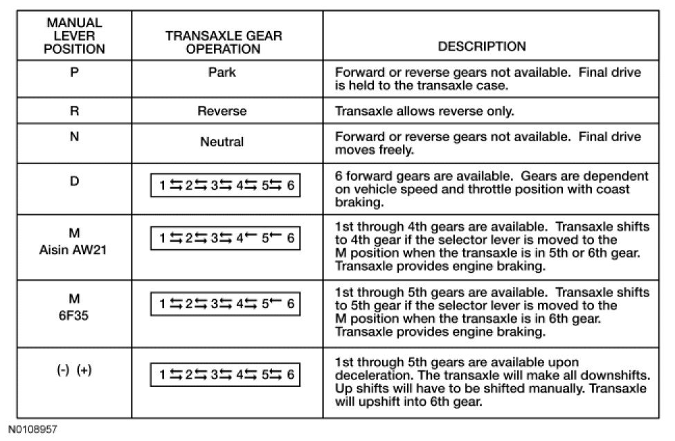 - the 6F35 transaxle operates in gears 1st through 5th and the Aisin AW21 operates in gears 1st through 4th.