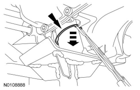 NOTICE: Install the snap ring with the bevel facing down or the snap ring can come loose causing damage to the transaxle.
