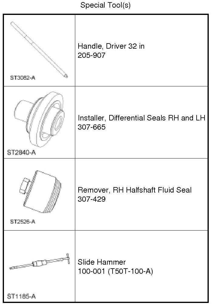 6. Using the Slide Hammer and RH Halfshaft Fluid Seal Remover, remove and discard the RH differential seal.