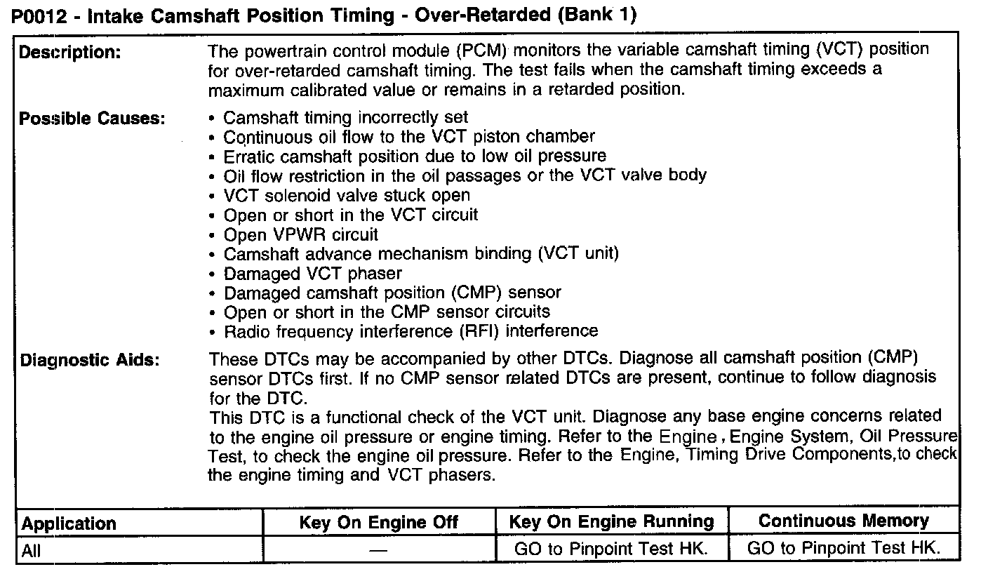 P0012 - Intake Camshaft Position Timing - Over-Retarded (Bank 1):