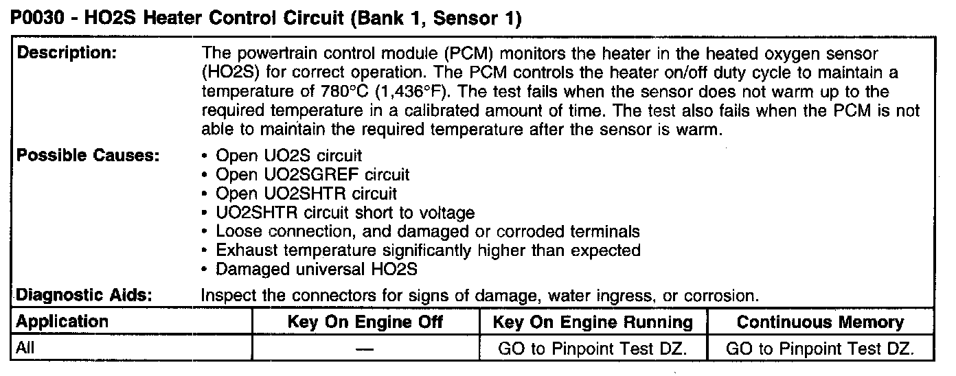 P0030 - HO2S Heater Control Circuit (Bank 1, Sensor 1):