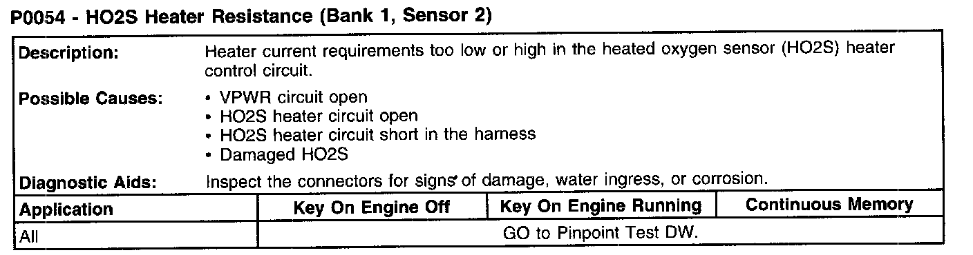 P0054 - HO2S Heater Resistance (Bank 1, Sensor 2):