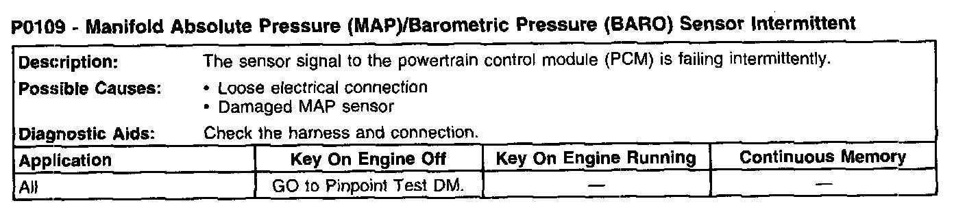 P0109 - Manifold Absolute Pressure (MAP)/Barometric Pressure (BARO) Sensor Intermittent:
