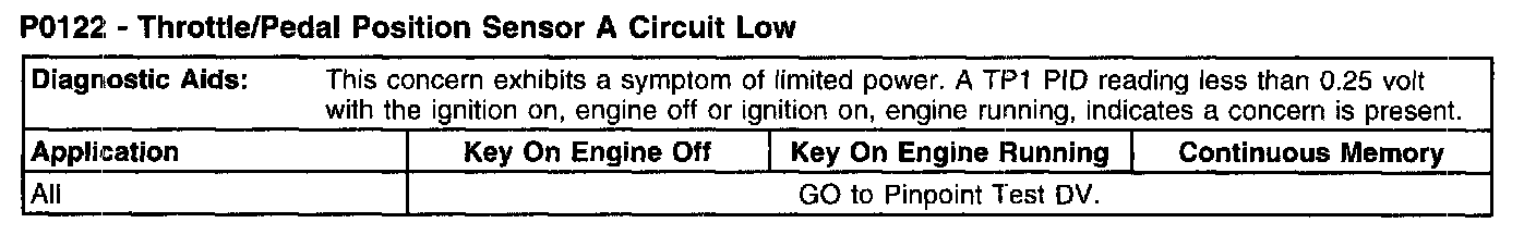 P0122 - Throttle/Pedal Position Sensor A Circuit Low (Part 2):