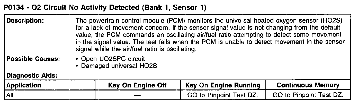 P0134 - O2 Circuit No Activity Detected (Bank 1, Sensor 1):