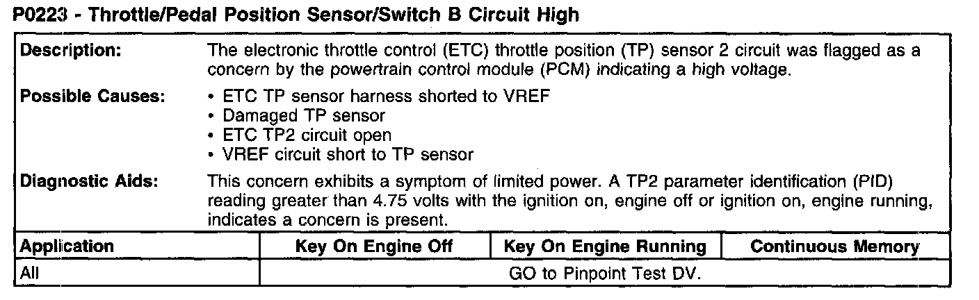 P0223 - Throttle/Pedal Position Sensor/Switch B Circuit High:
