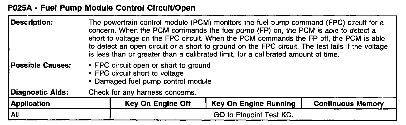 P025A - Fuel Pump Module Control Circuit/Open: