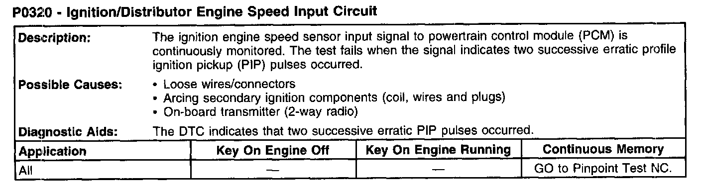 P0320 - Ignition/Distributor Engine Speed Input Circuit: