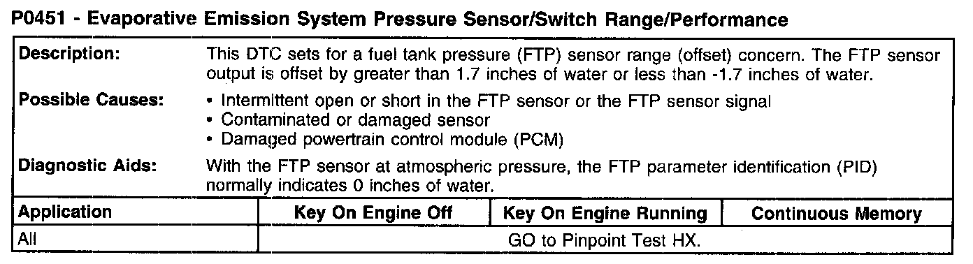 P0451 - Evaporative Emission System Pressure Sensor/Switch Range/Performance: